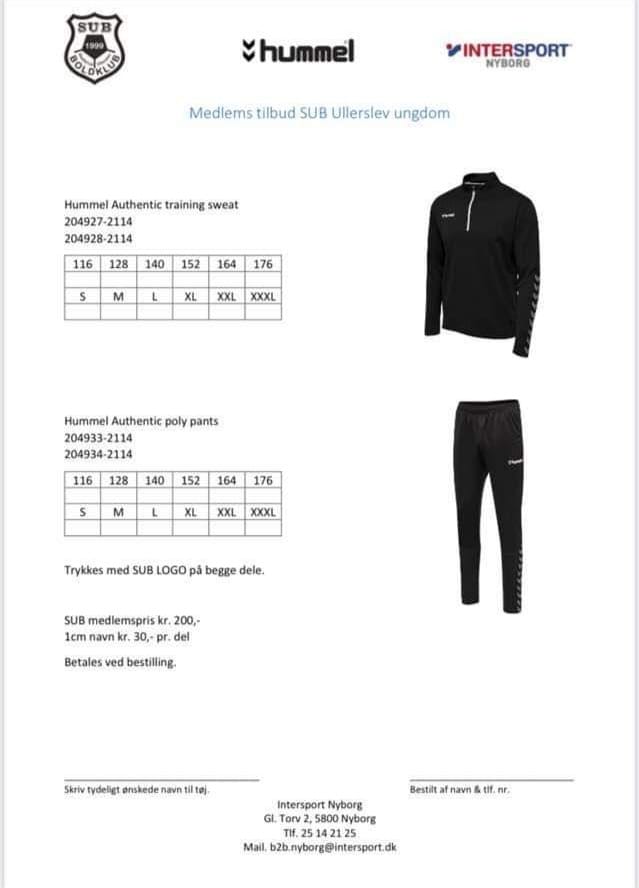 Takket være sponsorater fra SPAR Ullerslev og Langtved Friskole, kan SUB ULLERSLEV tilbyde en ny klubdragt til en super pris. Dragten skal prøves, bestilles og betales i Intersport Nyborg.